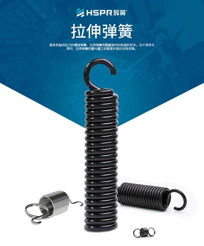 拉伸彈簧是承受軸向拉力的螺旋彈簧,拉伸彈簧大都用圓截面材料制造。在不承受負荷時,拉伸彈簧的圈與圈之間大都是并緊的沒有間隙。