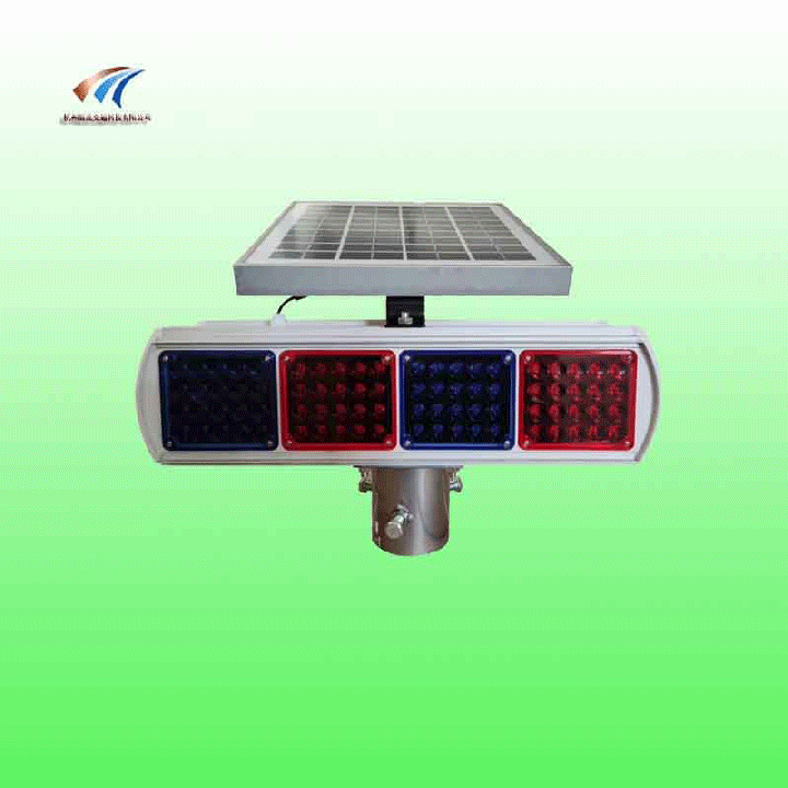 太陽能紅藍爆閃燈,太陽能爆閃燈,移動式爆閃燈,爆閃警示燈,交通警示燈 太陽能爆閃燈由太陽能板、蓄電池、LED燈組以及電腦芯片控制器等部分組成,實現(xiàn)LED燈組長時間有規(guī)律的爆閃,達到道路安全警示的功能。