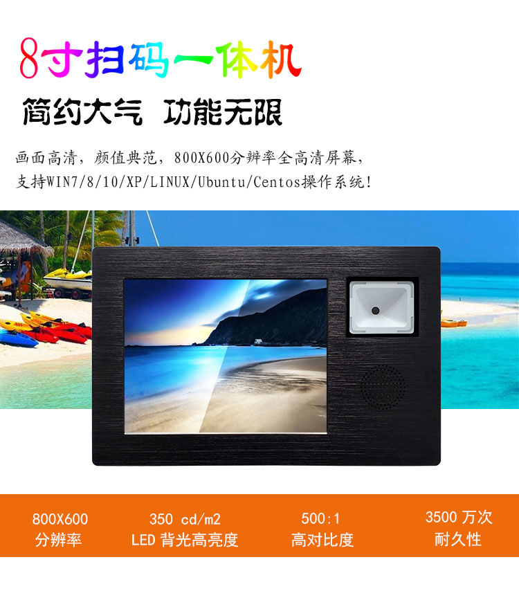 可定制雙網(wǎng)口8寸工控一體機(jī)二維碼掃碼觸摸屏