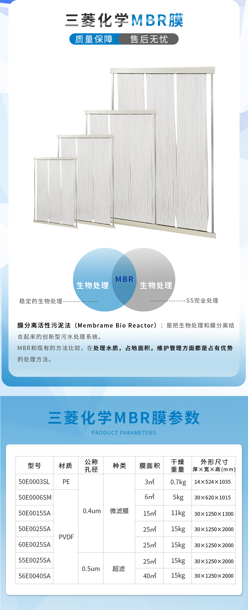 5.日本三菱化學(xué)MBR簾式膜材質(zhì)抗藥性高