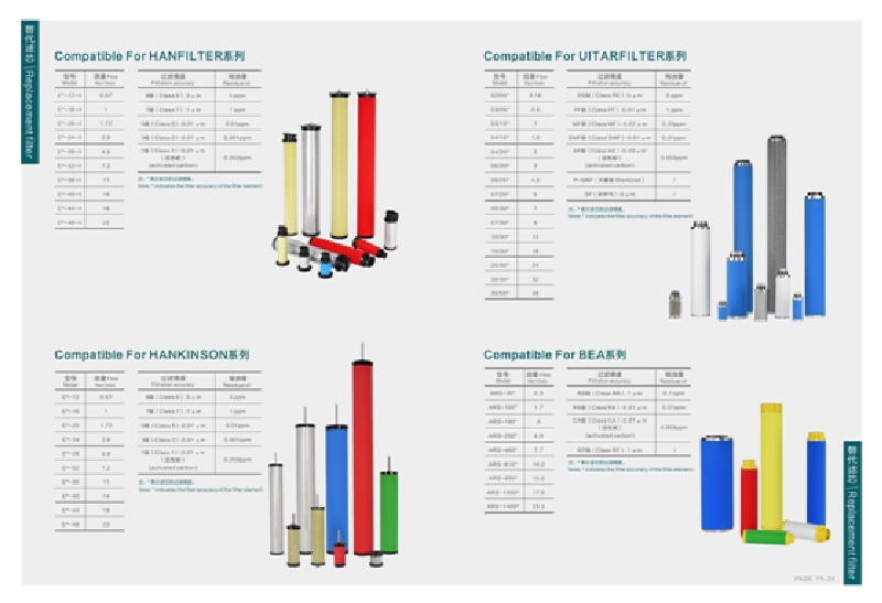 【2】國產(chǎn)品牌濾芯均為我司生產(chǎn)的替代原廠品牌濾芯,其過濾濾材采用德國原裝進(jìn)口HV公司產(chǎn)品,注冊商標(biāo)為“佳潔”牌。本公司涉及的其它品牌均無品牌意義,只是作為產(chǎn)品型號參照和客戶選型對照使用。進(jìn)口濾芯和過濾器為原裝進(jìn)口,有防偽標(biāo)志。我司長期為國內(nèi)各大企業(yè)貼牌生產(chǎn)各種款式的壓縮空氣精密過濾器濾芯。歡迎來電咨詢!精密濾芯