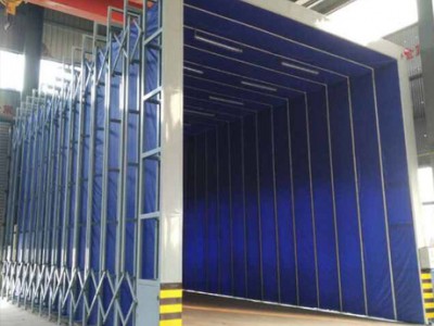 伸縮式噴漆房由伸縮式噴漆房和干式噴漆柜兩部分組成。其長(zhǎng)寬高可以根據(jù)客戶要求設(shè)計(jì)和制作。伸縮式噴漆房通稱伸縮房。伸縮房的結(jié)構(gòu)包括伸縮移動(dòng)房體、伸縮軌道、照明系統(tǒng)、伸縮警示系統(tǒng)、電控系統(tǒng)組成。移動(dòng)房體由驅(qū)動(dòng)龍門(mén)架、從動(dòng)伸縮架、伸縮連桿組成。